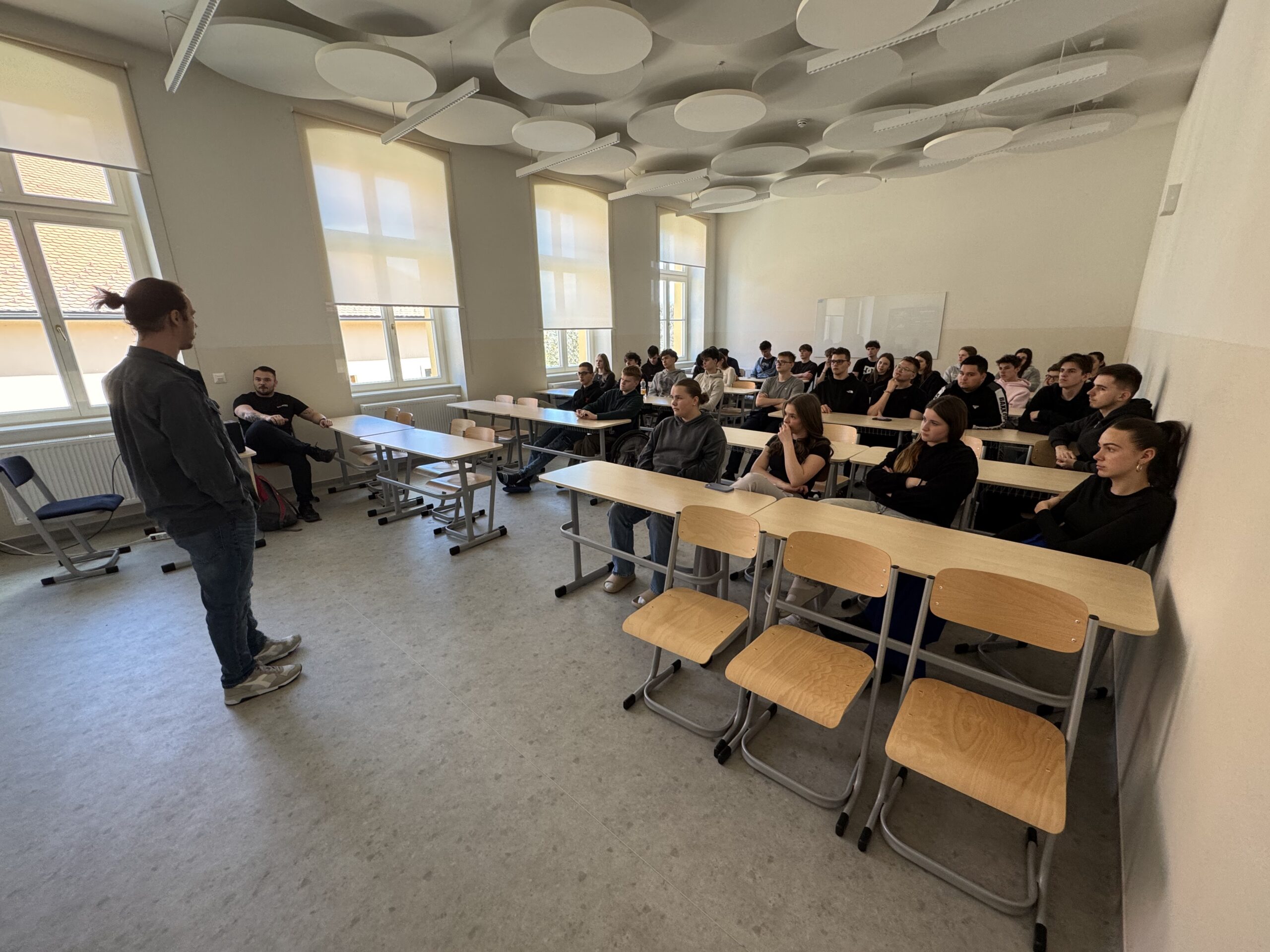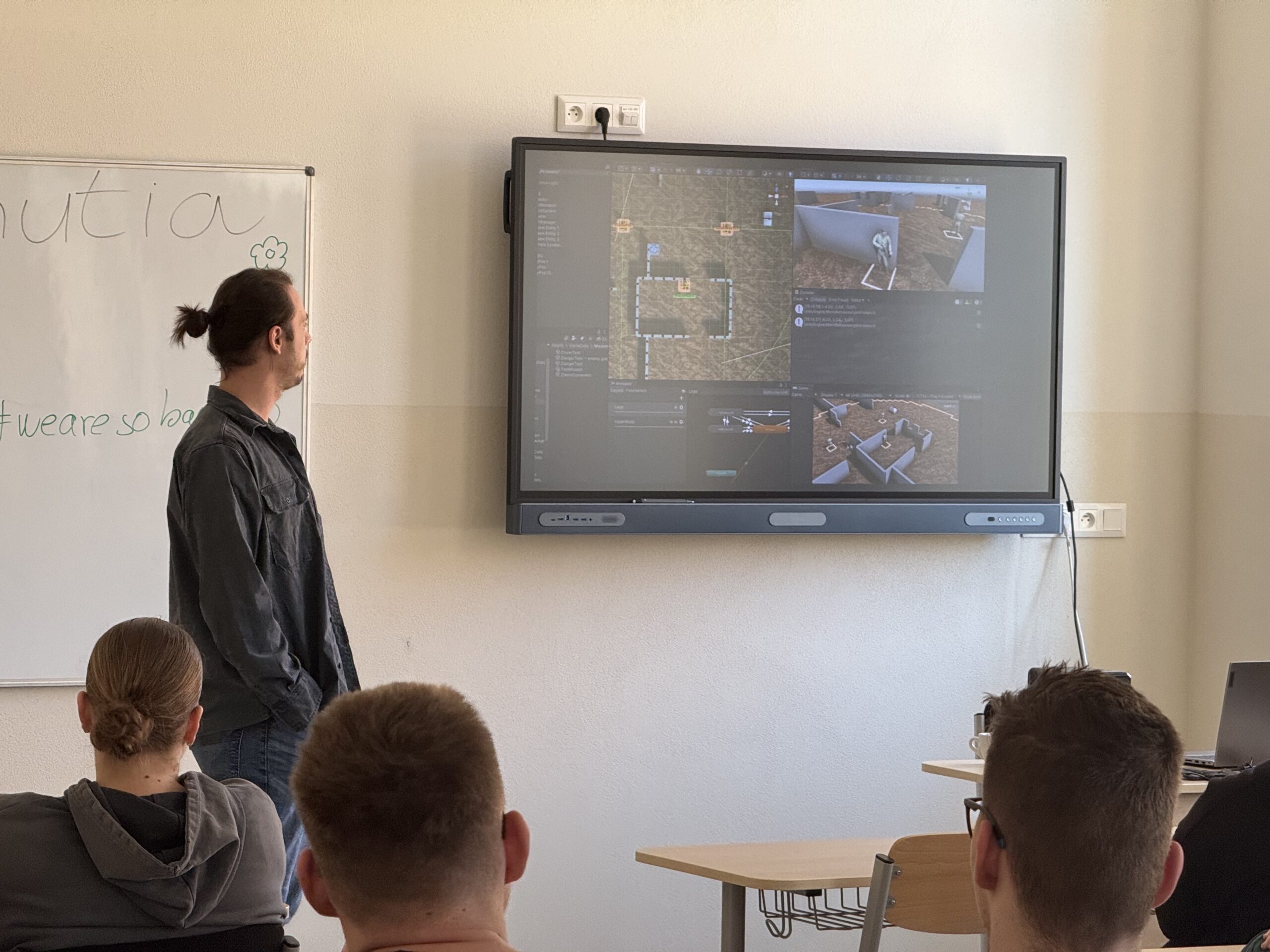 Zaujímavou časťou bola diskusia, v ktorej študenti kládli otázky týkajúce sa štúdia, potrebných zručností či možností uplatnenia v hernom odvetví. Dozvedeli sa napríklad, aké technológie sa dnes využívajú, ako vyzerá bežný pracovný deň vo vývojárskom tíme a aké výzvy prináša práca na reálnych projektoch.