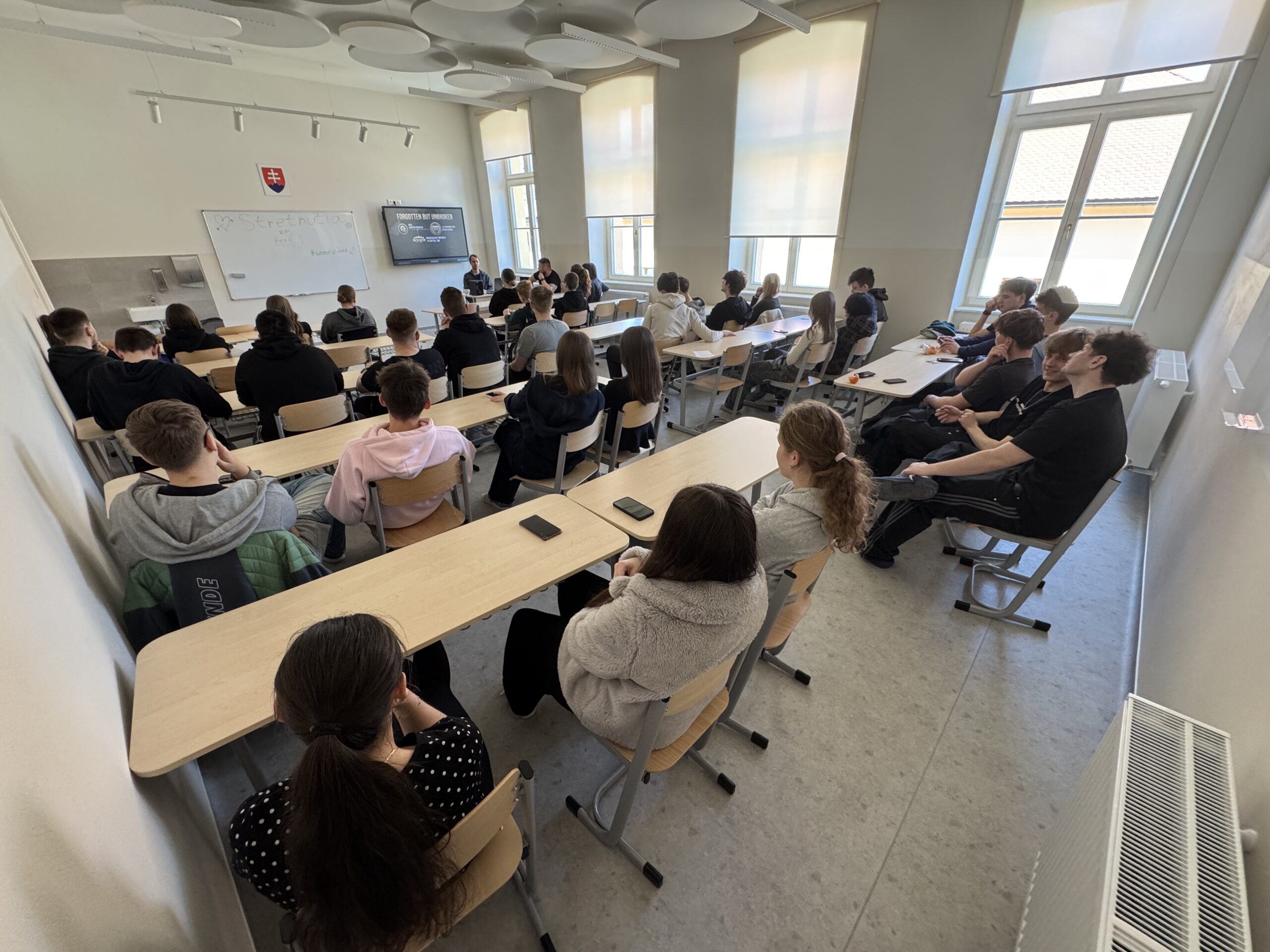 Dňa 24. apríla 2026 sa študenti III. a IV. ročníka seminára z informatiky zúčastnili odbornej prednášky zameranej na oblasť vývoja počítačových hier. Hosťom bol Martin Remiáš, ktorý pracuje v hernom štúdiu Centurion Developments.